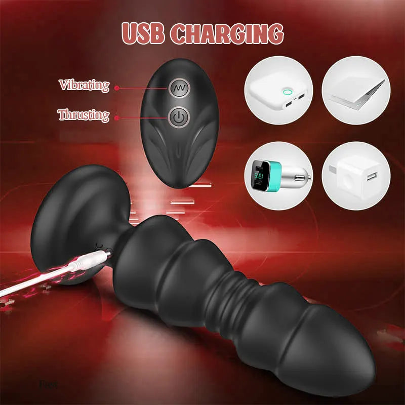 Experience ultimate convenience with this remote-controlled thrusting anal vibrator. Easily adjust the thrusting and vibration intensity with the included remote, giving you effortless control for an unforgettable experience.